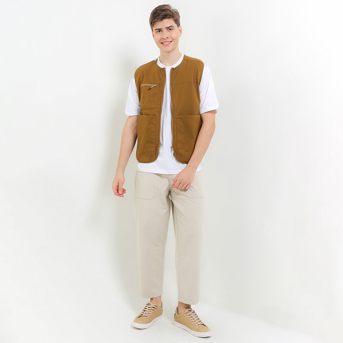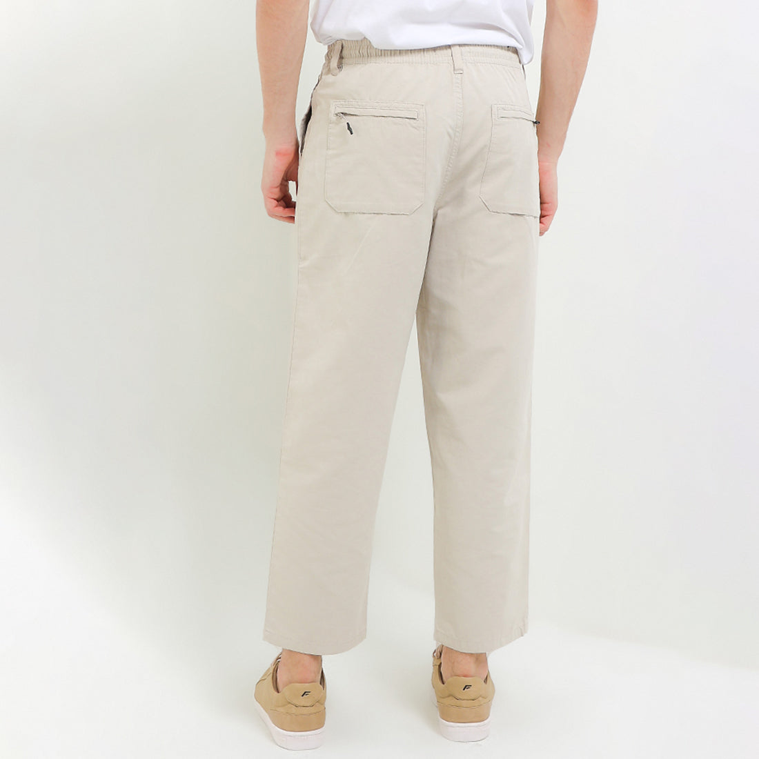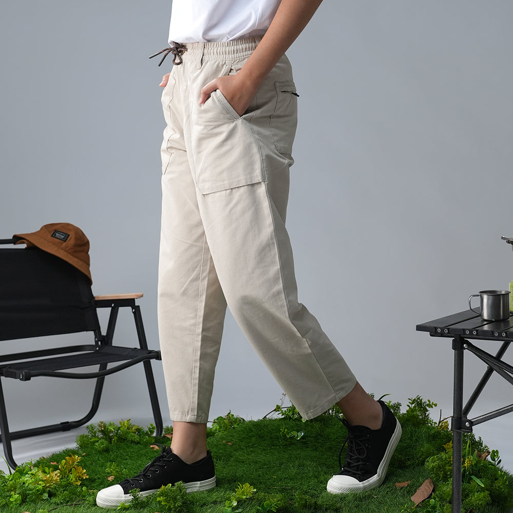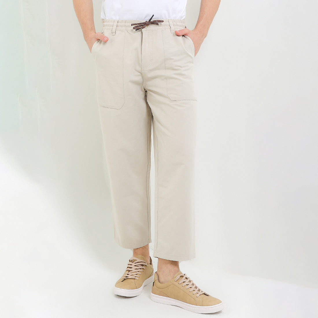 - Celana chino bergaya urban casual dengan detail tie waist