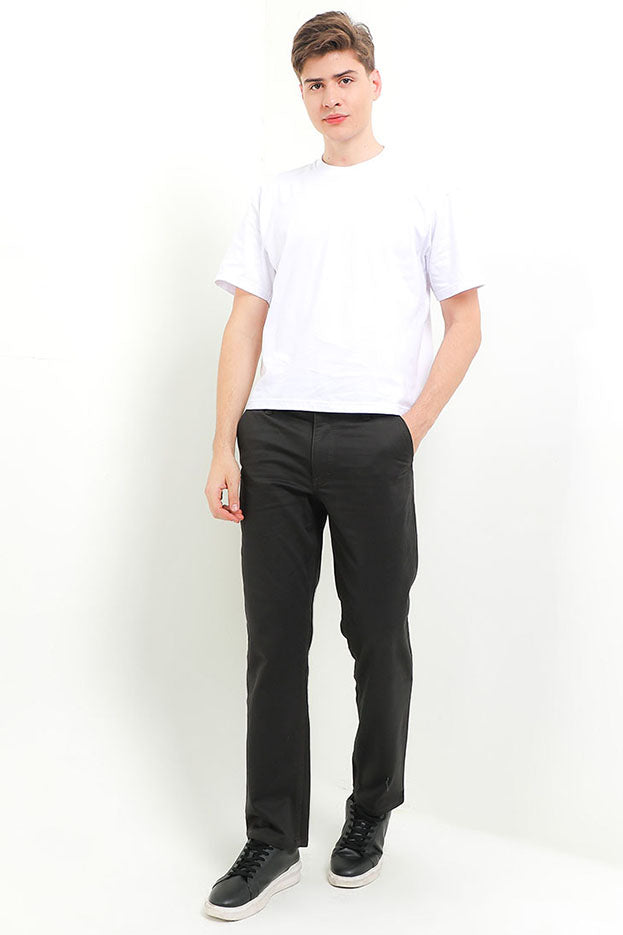 - Celana chino warna solid untuk tampilan smart casual