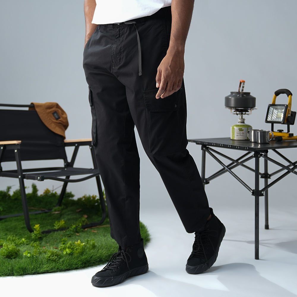 - Celana cargo warna solid untuk gaya urban casual