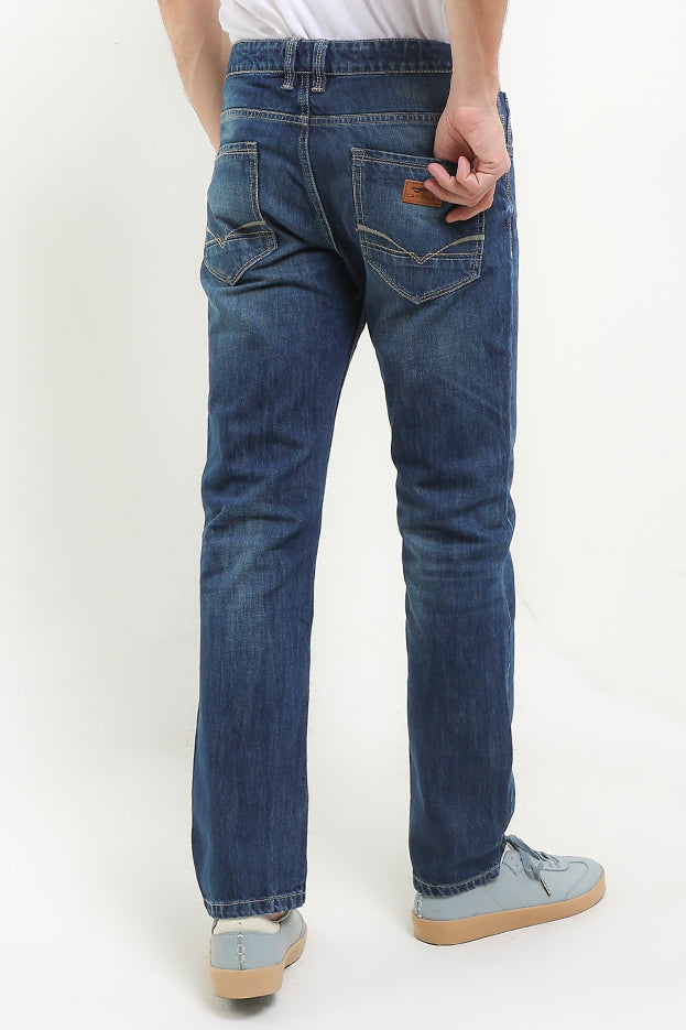 - Celana jeans desain washed dengan siluet urban versatile