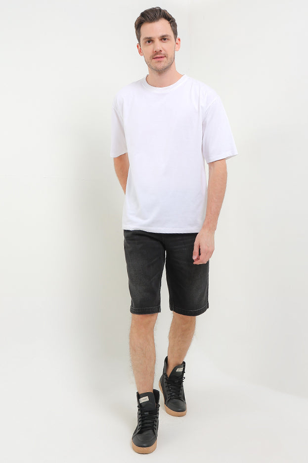 - Celana bermuda denim bernuansa washed tone untuk gaya urban classic