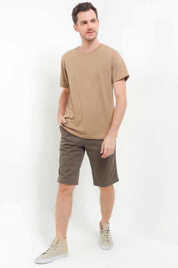 - Celana bermuda warna solid dengan desain basic versatile