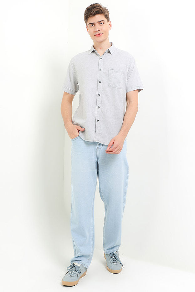 - Kemeja lengan pendek bergaya smart casual dalam nuansa solid tone