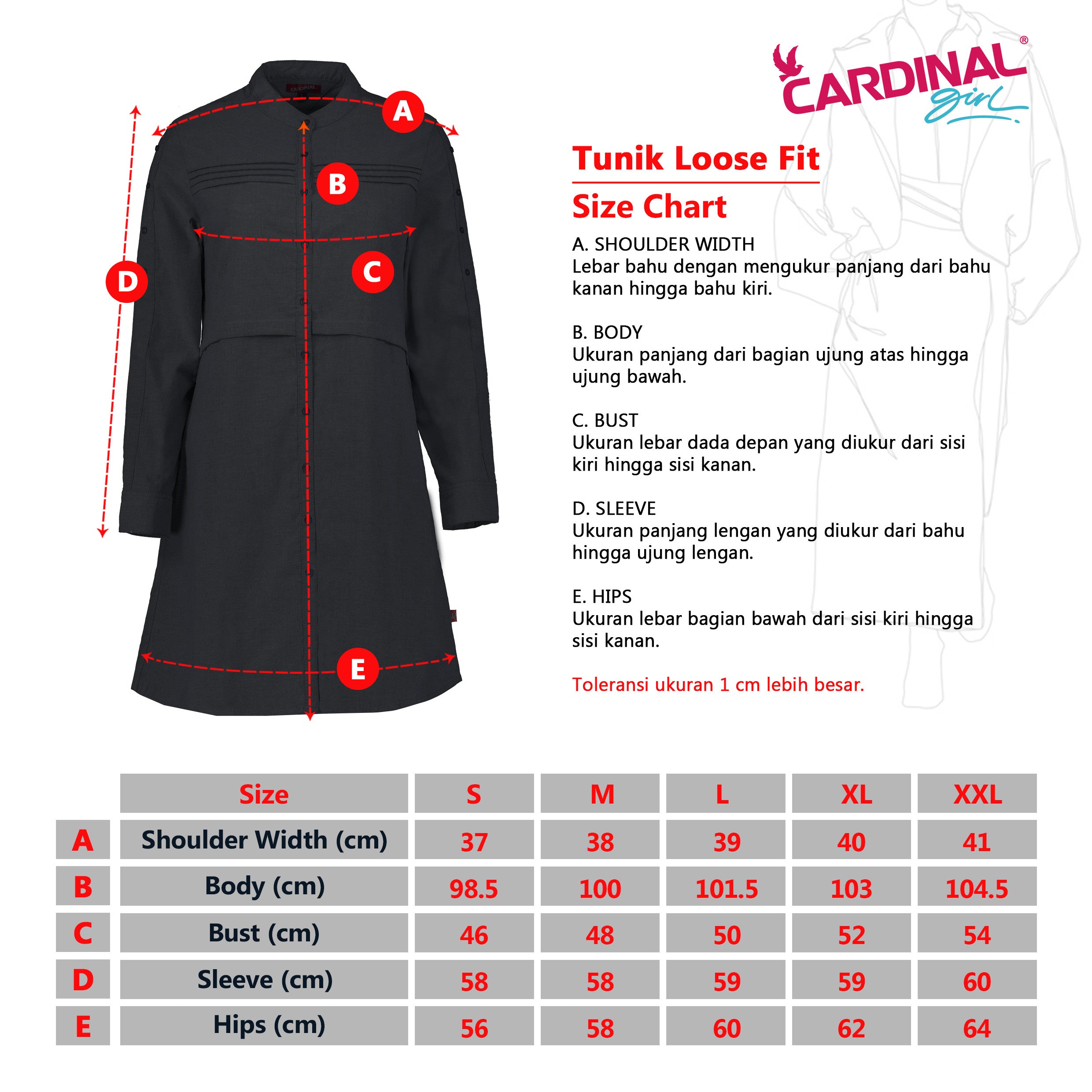 - Perhatikan size chart sebelum membuat pesanan