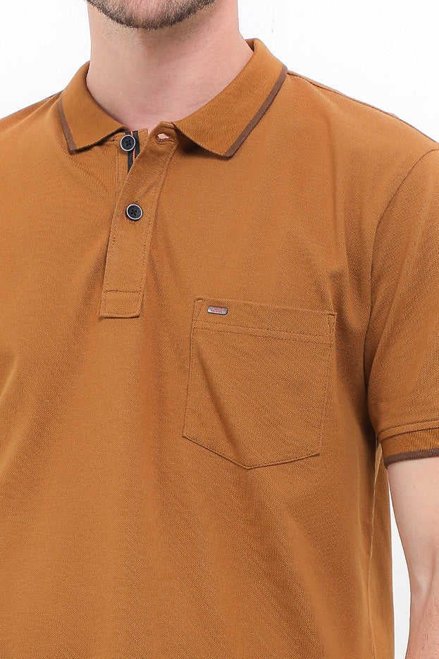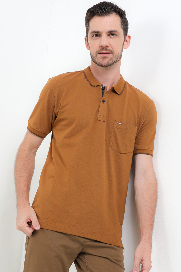 Polo shirt warna solid dengan desain modern classic